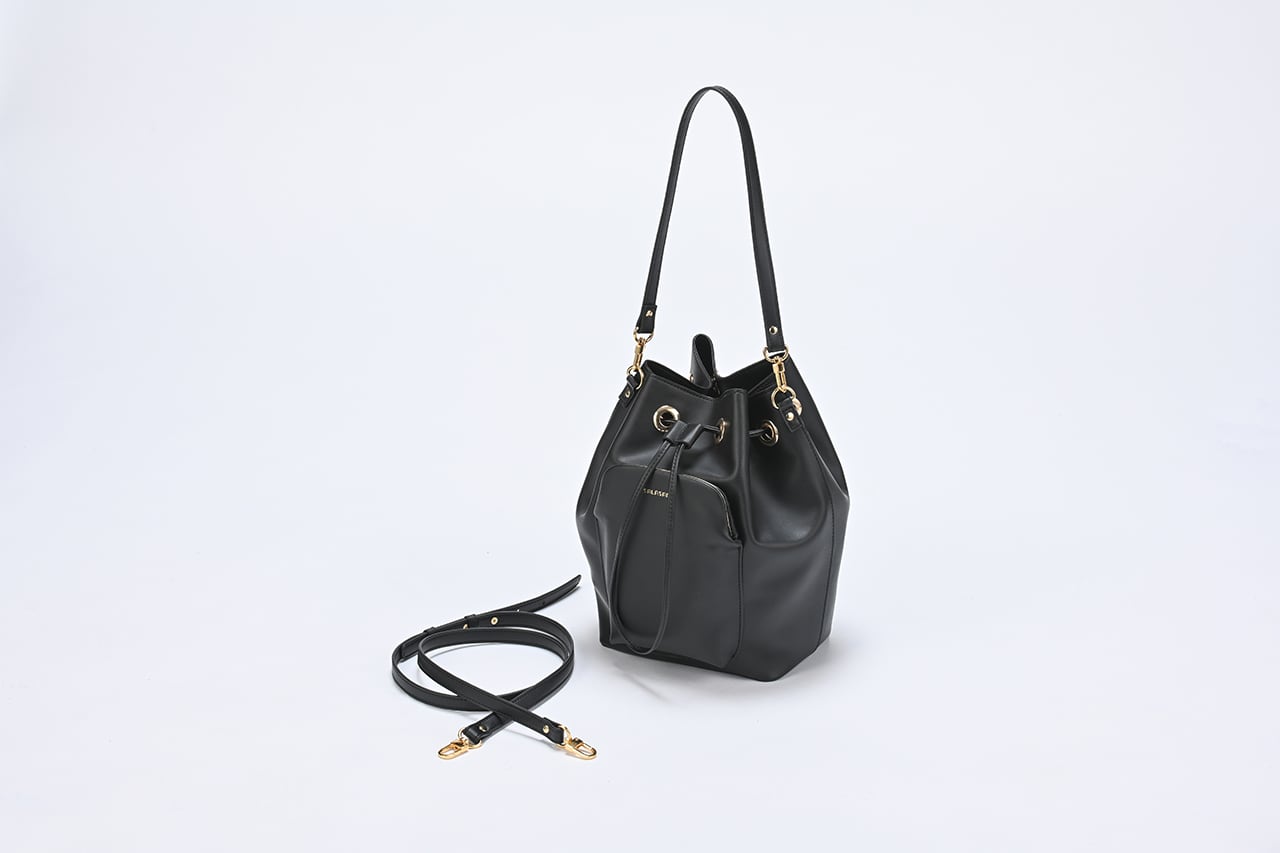 コンパクトなサイズ感ながら、長財布やドリンクボトルもすっぽりと収納できるのでデイリー使いはもちろん、大人なスタイリングまで、幅広く合わせられます。